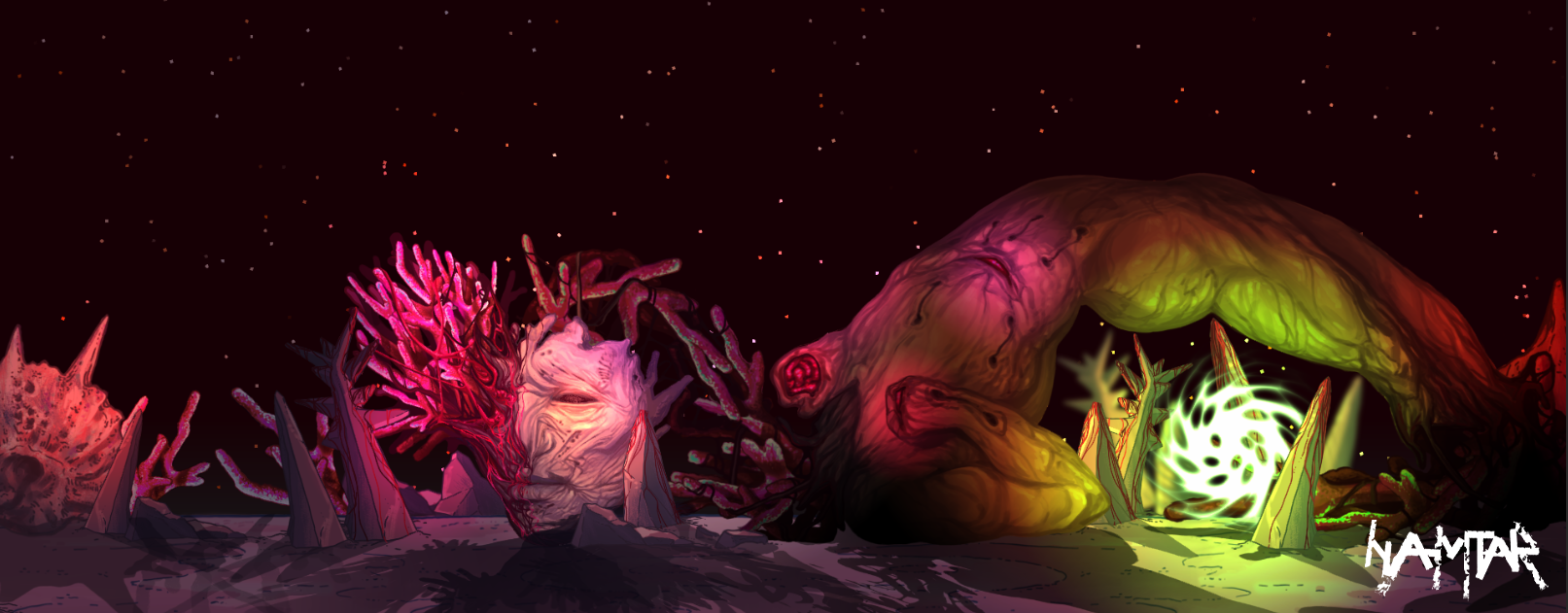 Namtar is a sci-fi action-horror set in a grotesque purgatory where beings from countless universes awaken stripped of memory.